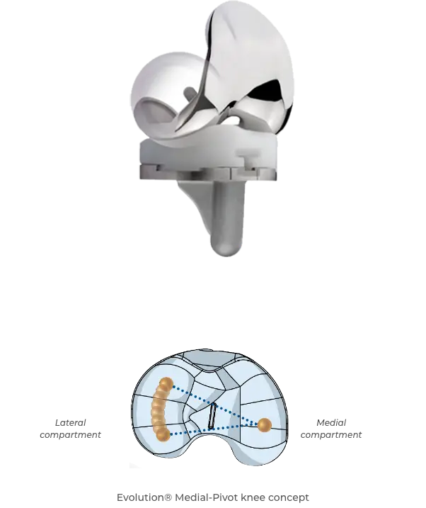 The Evolution® Medial-Pivot is a three-compartment prosthesis designed for total replacement of the natural knee joint.