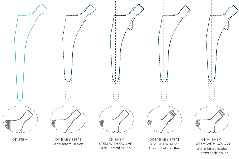 Lateralised version, cementless and collarless