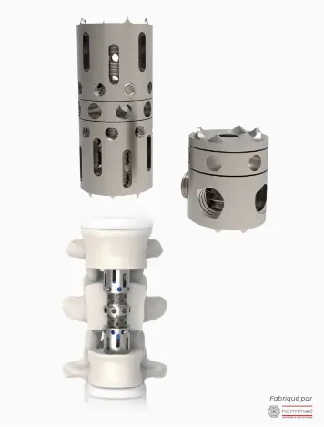 Cette dernière version, dont la patte présente un trou d’insertion pour la vis de fixation et qui comprend également 5 ailettes et 2 picots, est particulièrement intéressante pour les os de qualité osseuse insuffisante.