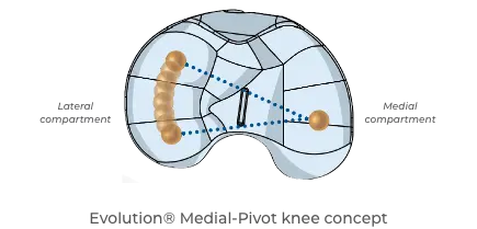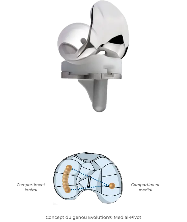 L’Evolution® Medial-Pivot est une prothèse tricompartimentale conçue pour le remplacement total de l’articulation naturelle du genou.