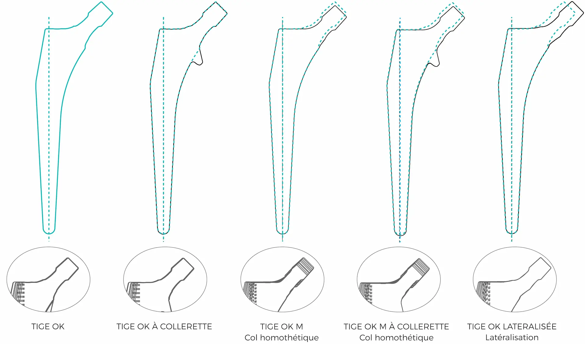 Matériau de la tige à cimenter : Inox, finition poli-miroir