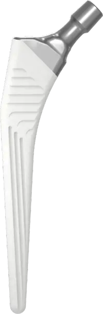 Matériau de la tige sans ciment : titane revêtu d’hydroxyapatite